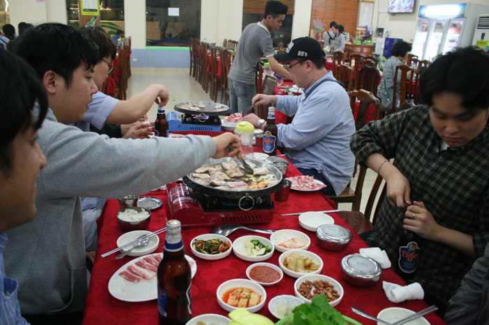 타이티엔사원을 마지막으로 하롱베이로 이동하며 저녁으로 삼겹살을 먹으러 갑니다.