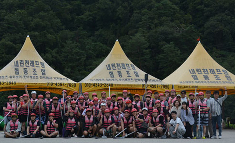 모두가 시원하게 즐길수 있는 래프팅과 함께 취미로 악기를 하는 직원들이 장기를 뽑내주어